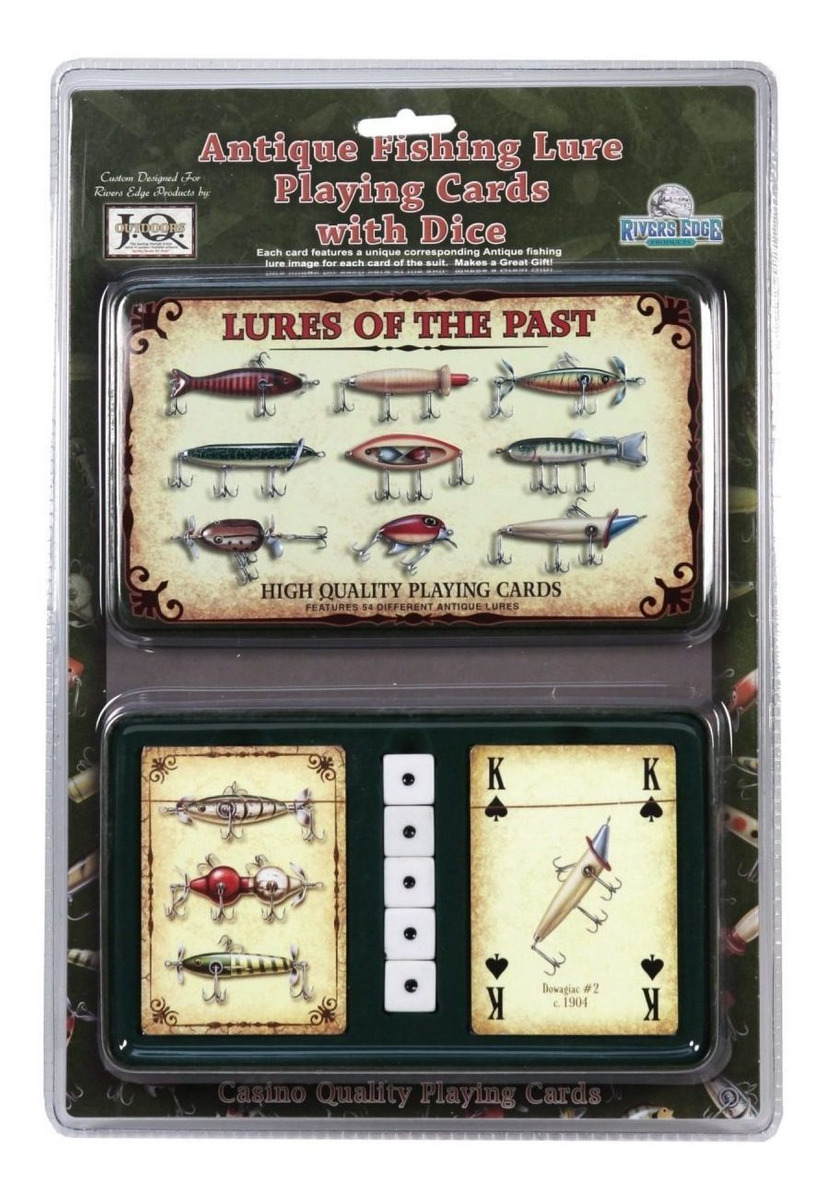 2 mazos de cartas tipo pocker con diseño de señuelos de pesca antiguos de los años 1800