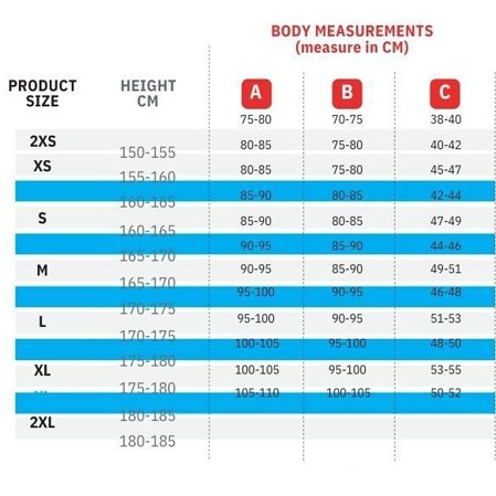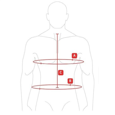 - Vita dispone de varias tallas para que se adapte a la gran mayoría de jinetes y amazonas. Ver en «imágenes» la tabla de las distintas medidas y el dibujo de las medidas a tomar del cuerpo del jinete o amazona.