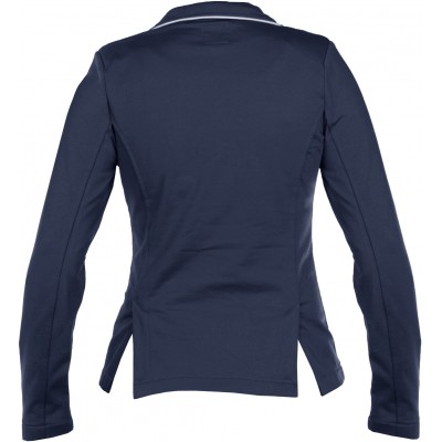 La americana concurso hipica lleva un ribete de color blanco en el cuello proporcionándole personalidad. Además también lleva el ribete blanco en los dos bolsillos laterales de la americana. También destaca el tejido bi-elástico de la americana. Se ajusta perfectamente al cuerpo de la amazona.