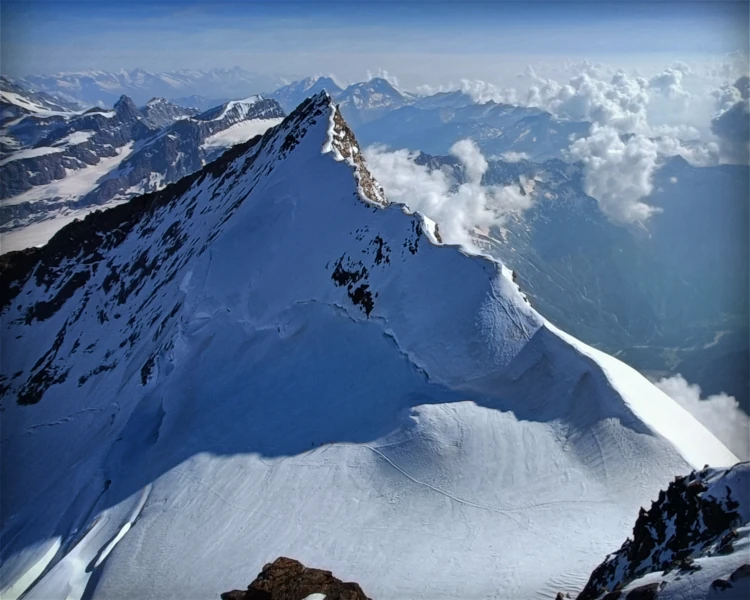 La Punta Dufour (4634m.) es la segunda montaña más elevada de los Alpes, pero al ser más difícil que el Mont Blanc se encuentra en una escala superior en cuanto a dificultad se refiere y en una escala mucho menor en términos de aglomeraciones.