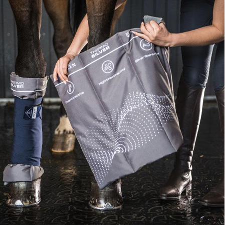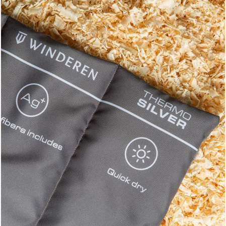 Bajo vendas Winderen para caballos con una de las tres capas con iones de plata. Los iones de plata limitan la propagación de bacterias y de hongos. Por tanto se reduce el riesgo de infecciones en la piel. Los bajo vendas llevan también una capa termo-aislada muy transpirable. Y, por último, la tercera capa es de algodón que permite el paso del vapor.