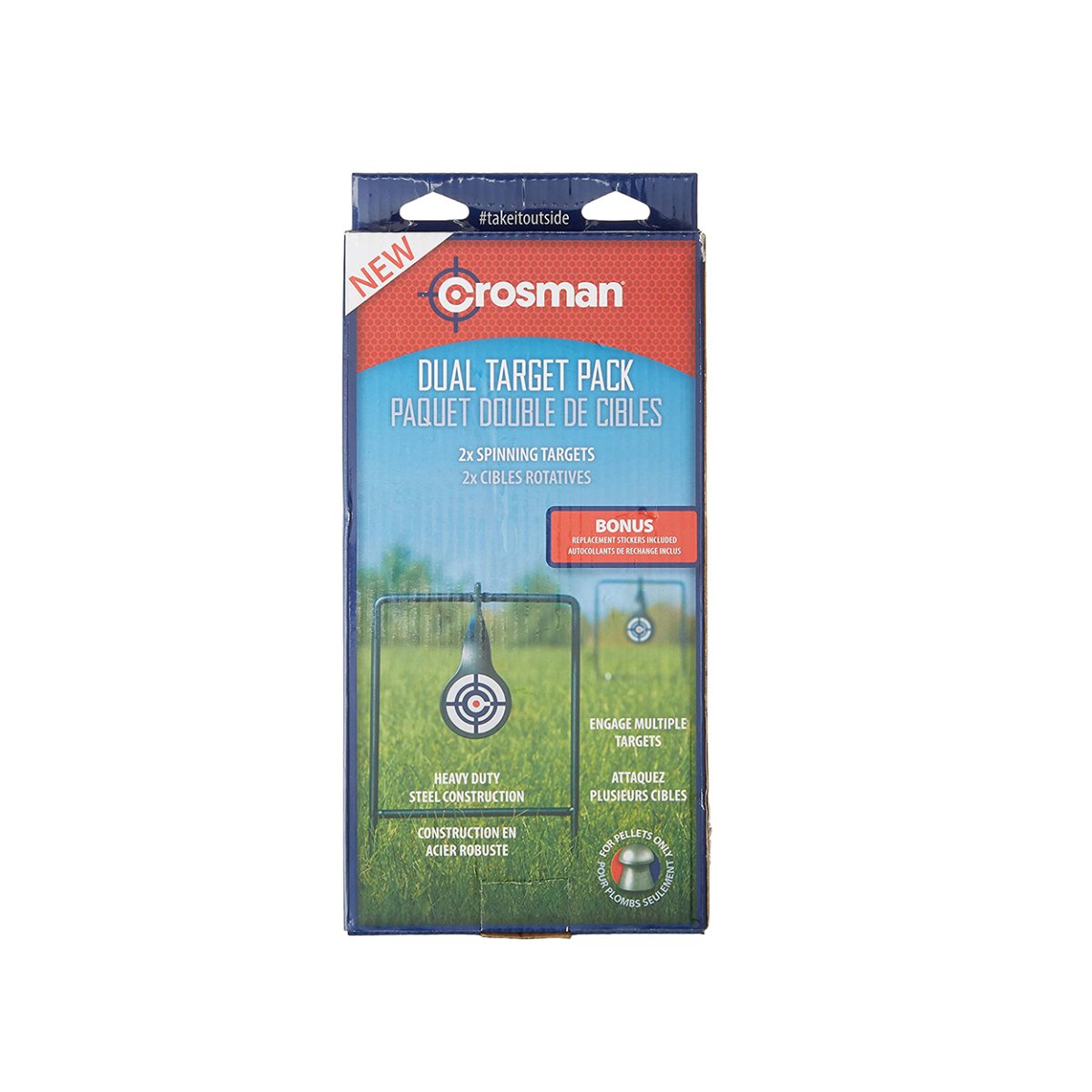 Crosman Dual Spinning Target Pack proporciona dos objetivos completamente metálicos separados que puede colocar a diferentes distancias o ubicaciones. El sistema se pliega fácilmente para facilitar el almacenamiento y la portabilidad. El sistema de objetivos totalmente metálico es ideal para munición de calibre .177 a .22 e incluye pegatinas de objetivos adicionales. ¡No olvides la protección para los ojos y la munición Crosman!