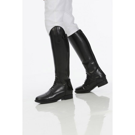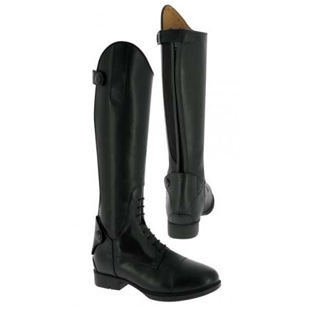 Las botas hipica niño están fabricadas de cuero. Además llevan cordones en el empeine. También se distinguen por la cremallera posterior y por la tira elástica paralela a la cremallera en toda su longitud.