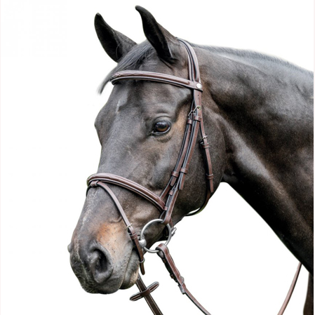 • La muserola y la frontalera están almohadilladas con cuero suave para confort del caballo.