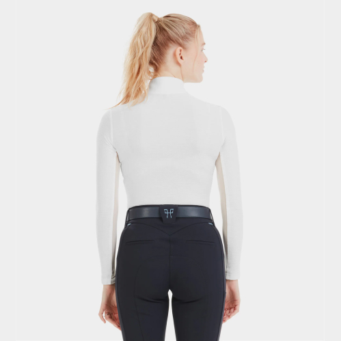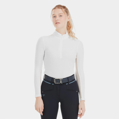 Su diseño es una combinación ideal entre la tecnología y la elegancia. Está meticulosamente pensado para entrenamientos al aire libre. Con una cremallera invisible en la parte delantera, una tela de malla estratégicamente ubicada debajo de los brazos y en los hombros para una mejor ventilación. Además, su ligereza, transpirabilidad y tecnología UV-Block integrada en el tejido proporcionan una protección efectiva contra los rayos solares y una rápida evaporación del sudor. Su elasticidad garantiza un ajuste perfecto a la postura del jinete, acompañándote en todas tus actividades ecuestres.