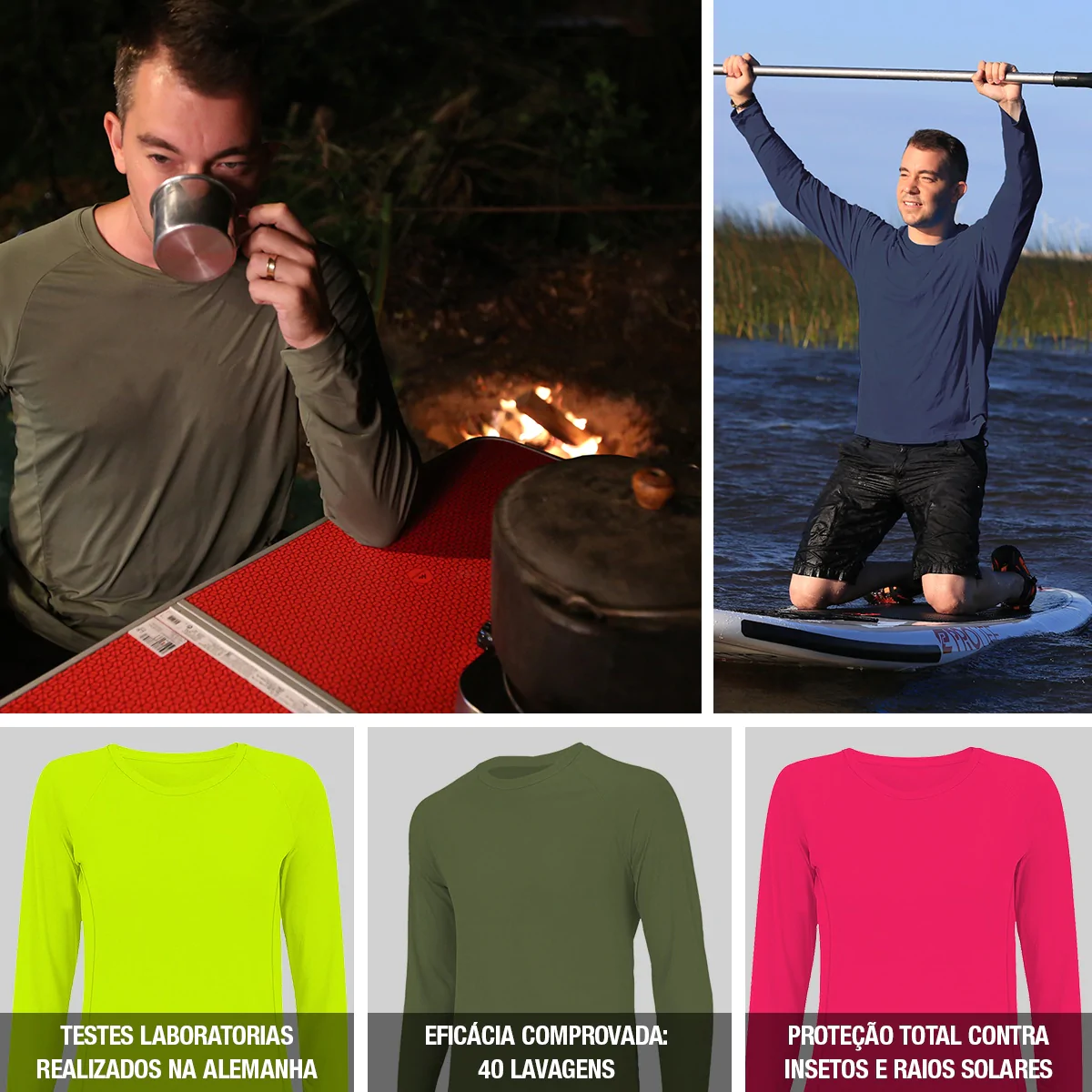 Presentamos la Camiseta Repelente de Insectos UV Femenina Explorer Prolife, resultado de una década de investigación y desarrollo de productos para salud y protección personal, producida con un moderno sistema de repelencia denominado «Anti-Insecto Permanente» (permanent anti-insect), obtenido por un proceso exclusivo de fabricación textil y certificado por un laboratorio en Alemania. La tela tiene en su composición un agente repelente inofensivo al ser humano, y todas las etapas son acreditadas por órganos reconocidos internacionalmente.
