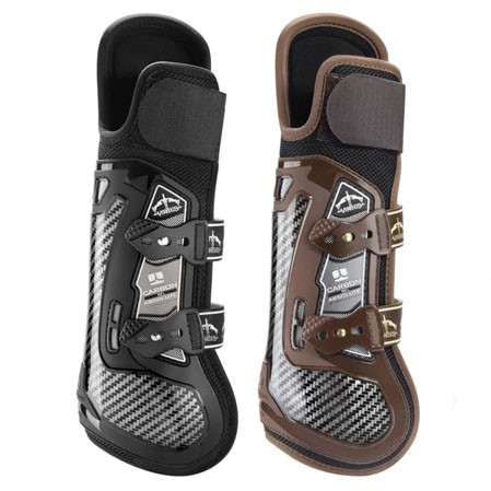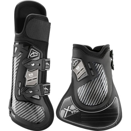 - Los protectores XPRO delanteros tienen una inserción de carbono muy fina y curvada en la zona del menudillo para proteger la zona de micro-traumas.