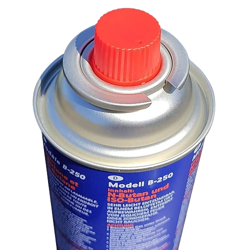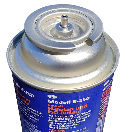 - Cartucho de gas butano para aparatos de cartucho de válvula acorde con la normativa europea.