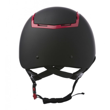 El casco hipica Equitheme Color lleva un ribete superior metálico en contraste con el negro del casco. Este contraste es en rojo. Además el casco también dispone de una excelente circulación del aire. También destacar el forro textil interior que lo podemos sacar, lavar y volver a colocarlo.