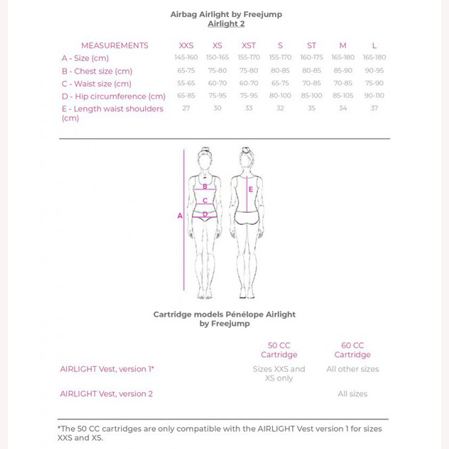 - El chaleco Airlight 2 puede utilizarse con una prenda «Freejump Airbag Technology». Como es el caso de todas las prendas compatibles con Penélope.