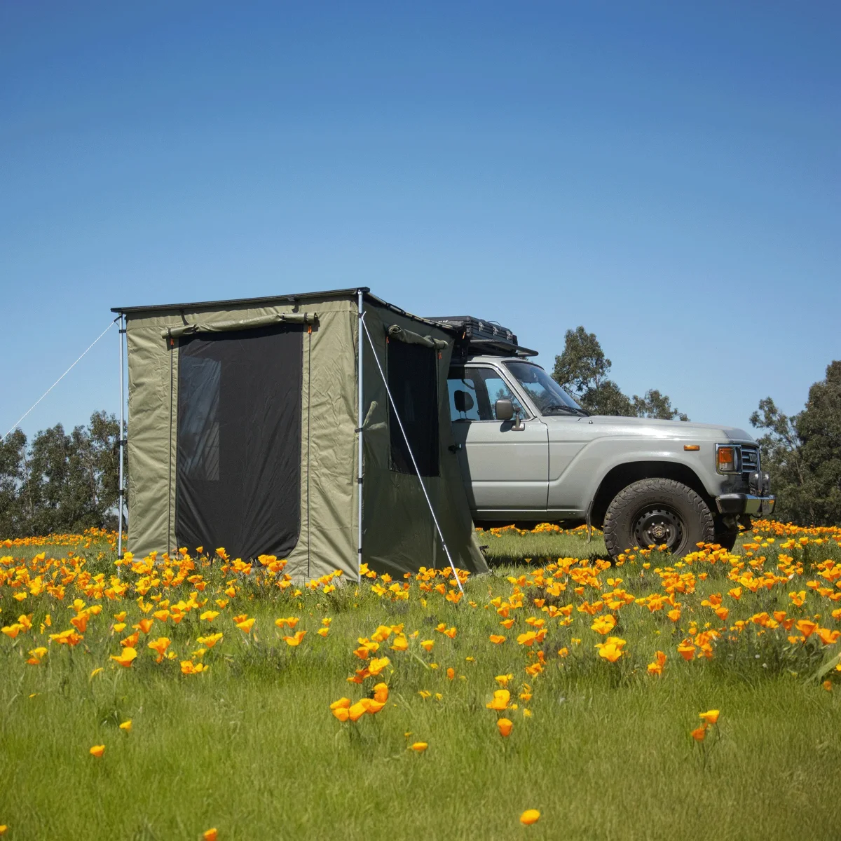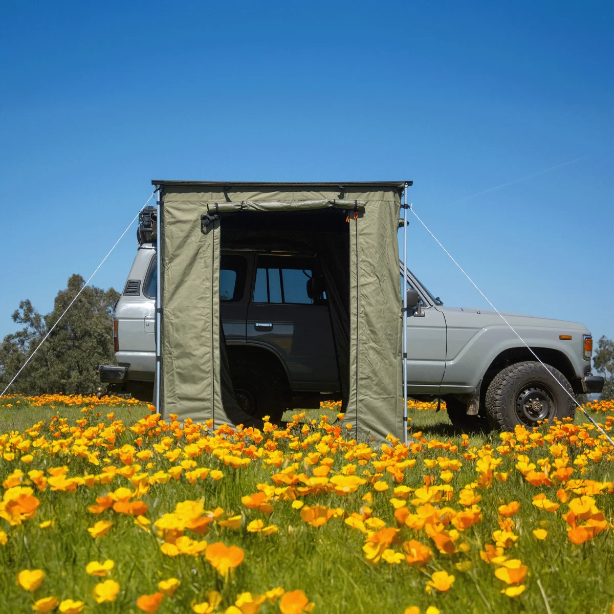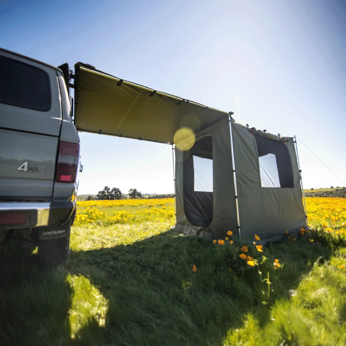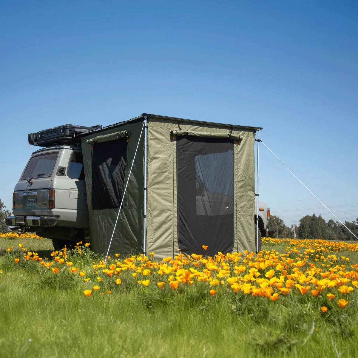 - Ampliación ideal del Toldo para poder estar de pie protegido del viento, el sol y la lluvia para cocinar, cambiarte de ropa, dejar un baño químico o incluso dormir.