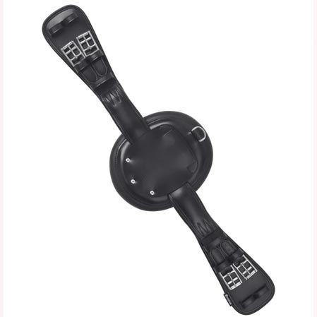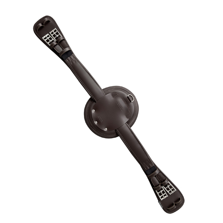 La cincha Prestige RP 3A152 tiene un innovador diseño. Es una cincha de cuero pensada especialmente para caballos de Doma Clásica. Destaca por el panel en forma redonda ubicado en el centro de la cincha. Gracias a ello se eliminan los movimientos laterales ya que la cincha se desliza por el interior del panel que queda centrado en la parte baja y/o central del caballo. Además dicho panel consigue que la presión se distribuya de manera uniforme sobre una mayor superficie. También sobresale el colchón de aire del interior del panel que consigue reducir aún más la presión.
