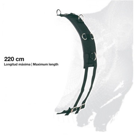 - El cinchuelo cuenta con 4 anillas a cada lado más dos anillas centrales para el ajuste de las distintas riendas auxiliares.