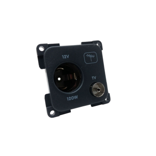 Toma de conexión interior enchufe 12V + conexión antena TV.