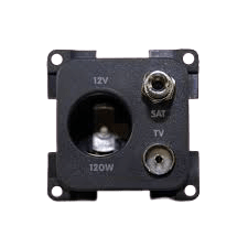 Toma de conexión interior enchufe 12V + conexión antena TV + SAT.