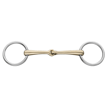 El filete articulado Aurigan Sprenger es para trabajar los caballos con bocado y filete. A doble rienda. Por otro lado, la embocadura esta hecha con la aleación Aurigan. Las anillas también son de Aurigan. Esta aleación Aurigan es muy cómoda para los caballos. La sienten bien, están cómodos. El Aurigan les hace masticar y, por tanto, salivar. Además, el diámetro de los cañones de 12 milímetros lo convierten en un filete duro.