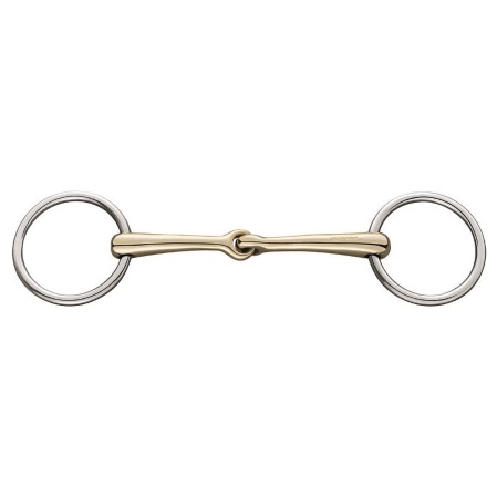 Filete articulado Sensogan Sprenger para cabezadas de doble rienda, bocado y filete. Además, la embocadura esta fabricada con la aleación Sensogan. Las anillas también son de acero inpxidable. La aleación Sensogan es muy confortable para los caballos. El Sensogan les hace masticar y, por tanto, salivar. Por último, el diámetro de los cañones es de 12 milímetros y ello lo convierte en un filete severo.