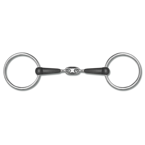 - Filete de tres piezas, articulado, el cual permite una mayor flexibilidad y un contacto mas suave con la boca del caballo.