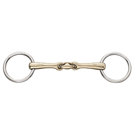El filete 3 piezas KKUltra 14mm HS Sprenger para montar con cabezadas de dos riendas. Además, la parte central tiene un giro de 45º cuando las riendas están tensas. En este ángulo la parte central se apoya en la lengua. También mantiene un contacto constante y suave. Y permite que las ayudas se transmitan de manera suave, precisa y correcta. Por otro lado, las embocaduras KK Ultra destacan por usar la excepcional sensibilidad de la lengua del caballo. El apoyo de la embocadura KK Ultra en la lengua le multiplica al caballo la percepción de la ayuda. Además, cuando tensamos las riendas la parte central del filete descansa sobre la lengua. Y lo hace suavemente, sin apretar. Por último, las embocaduras KK Ultra son muy cómodas para los jinetes y las amazonas. El uso de las riendas es con una presión mínima.