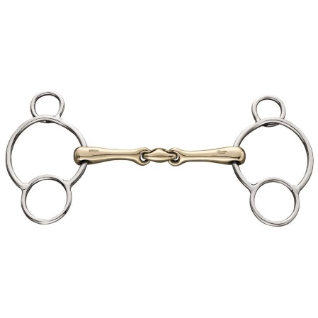 Un filete Pessoa tres piezas Sprenger muy versátil dadas las diferentes posibilidades donde ajustar las riendas. Además este Pessoa es una buena opción para caballos sensibles. La acción de la palanca tiene un ligero retraso por la posición de desplazamiento lateral de la anilla superior. La embocadura Pessoa pertenece a la serie KK Ultra de HS Sprenger. La pieza central gira 45º hacia delante al tomar contacto las riendas. Entonces esta pieza central se apoya con suavidad en la lengua resultando un contacto constante. Y gracias a la sensibilidad de la lengua del caballo se multiplica su efecto. Así las ayudas de las riendas pueden ser mucho más claras y precisas.
