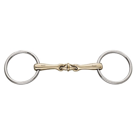 El filete Sprenger rueda y tres piezas tiene un giro de 45º hacia delante. Cuando tomamos contacto con las riendas el ángulo gira y la embocadura descansa sobre la lengua. Consigue obtener una comunicación suave y efectiva al mismo tiempo. Además, la pequeña rueda en el centro de la pieza central brinda un mejor enfoque para el caballo. Concentra al caballo. La rueda de la pieza central le provoca salivar.