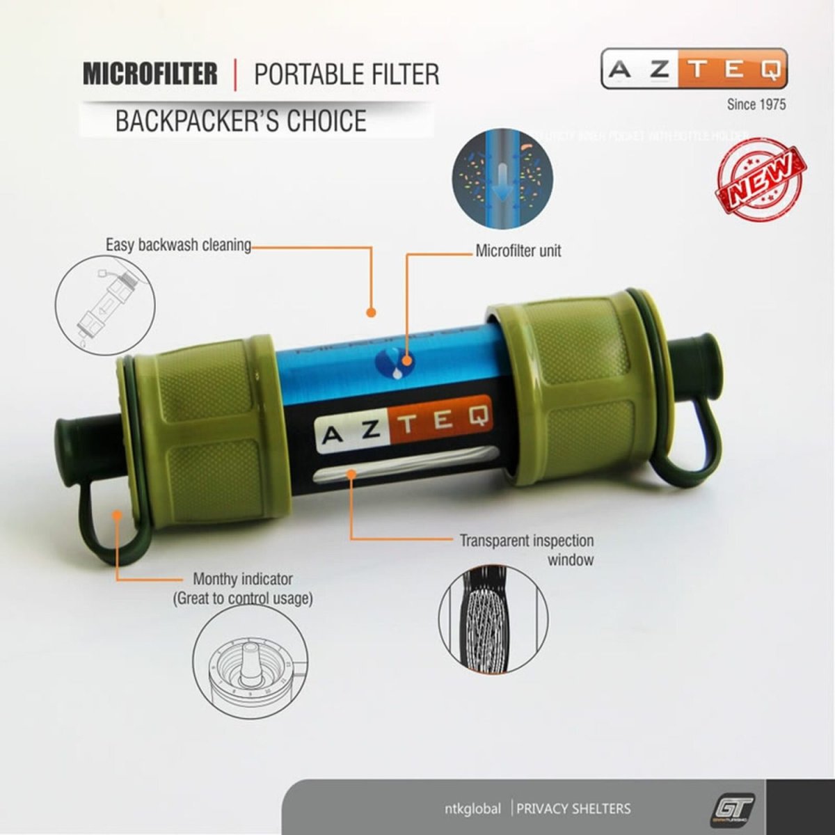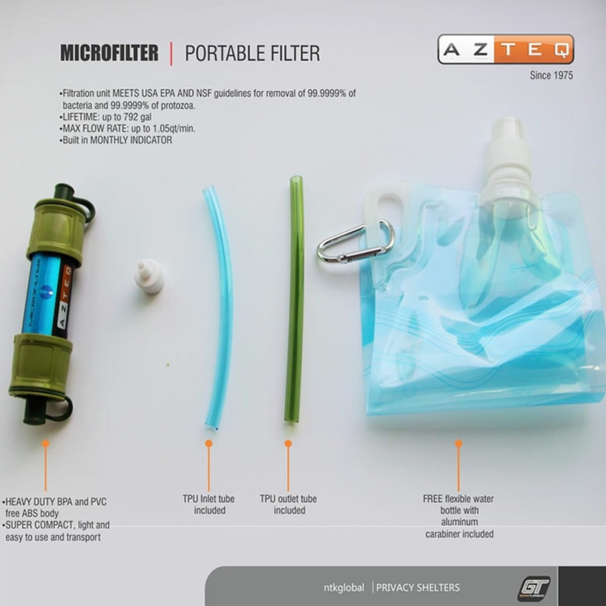 Filtro de Agua Portátil Azteq NTK 13x3cms + Bolsa 1 lt