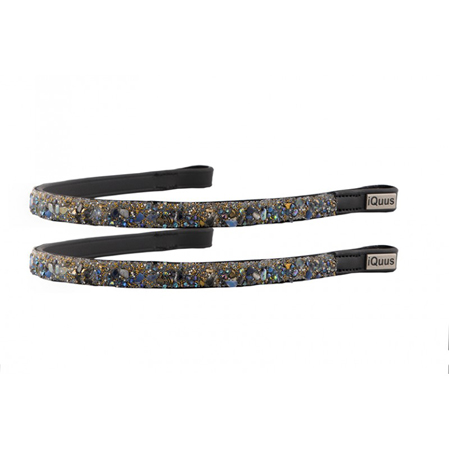 - Por otro lado la frontalera esta diseñada con una capa muy fina de cuero y en cristales diminutos a lo largo.