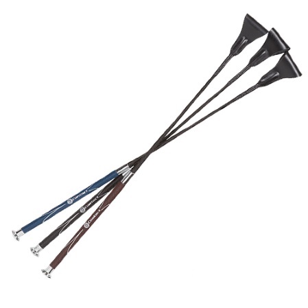 La fusta salto Fleck Professional Contact destaca por su empuñadura con un gran grip. Además la fusta tiene una longitud de 60 centímetros. Y esta disponible en negro y en azul o marrón combinados con negro. Es un tipo de fusta muy cómoda de manejar.