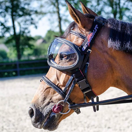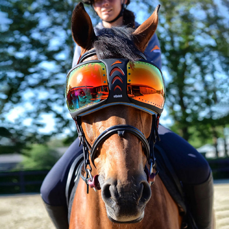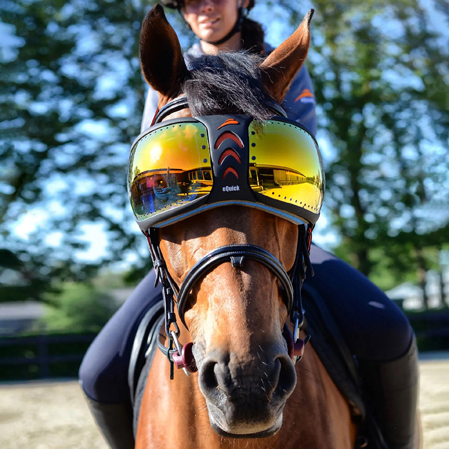 • Las gafas eVysor de Equick ofrecen la máxima protección solar a los ojos del caballo.