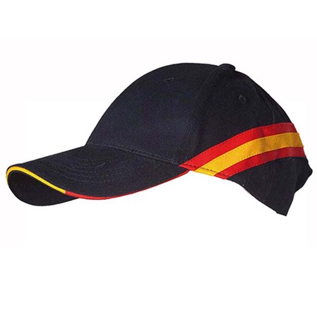 La gorra bandera España lleva un escudo de temática ecuestre que la diferencia del resto. Además de llevar la bandera española en los laterales. También lleva la bandera en la fina franja de la visera. Y una pequeña bandera en la zona posterior.