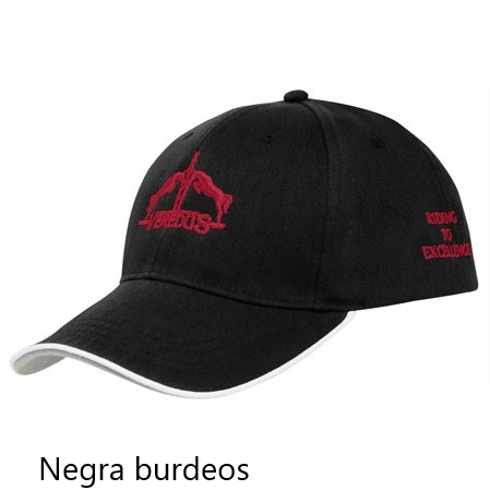 - Los colores disponibles de la gorra con la base negra son los siguientes: burdeos, azul, rosa y marfil.