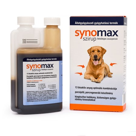 El jarabe articulaciones perros Synomax es una fórmula con 13 sustancias activas que les ayudan en el movimiento. Además de mejorar la flexibilidad y la movilidad de las articulaciones regeneran el cartílago. Synomax es una terapia eficaz para perros que padecen dolor articular. Las sustancias bioactivas esenciales que contiene mejoran el funcionamiento óptimo de los tejidos conectivos y de las articulaciones.