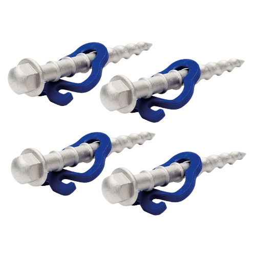 Si el suelo es demasiado duro para una piqueta normal, la piqueta de tornillo es ideal. Golpee la piqueta contra el suelo con un martillo normal. Con la herramienta opcional Peggy Peg Kombi o la Alu Tool, lo saca del suelo de forma simple. Con los clips azules incluidos no es necesario atornillar la piqueta completamente al suelo.