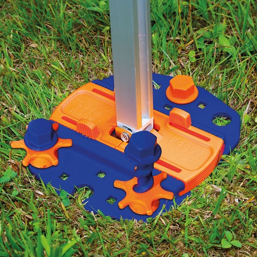 A veces no es posible atornillar completamente las piqiuetas. Si ya tiene placas de fijación Anker Plate 2.0, entonces las piquetas Peg & Stop son la solución. Introduzca las piquetas azules en el suelo hasta que no pueda avanzar más. ¡Luego gire la tuerca naranja varias veces hacia la derecha y su placa de fijación Ankerplaat ya no podrá salir!