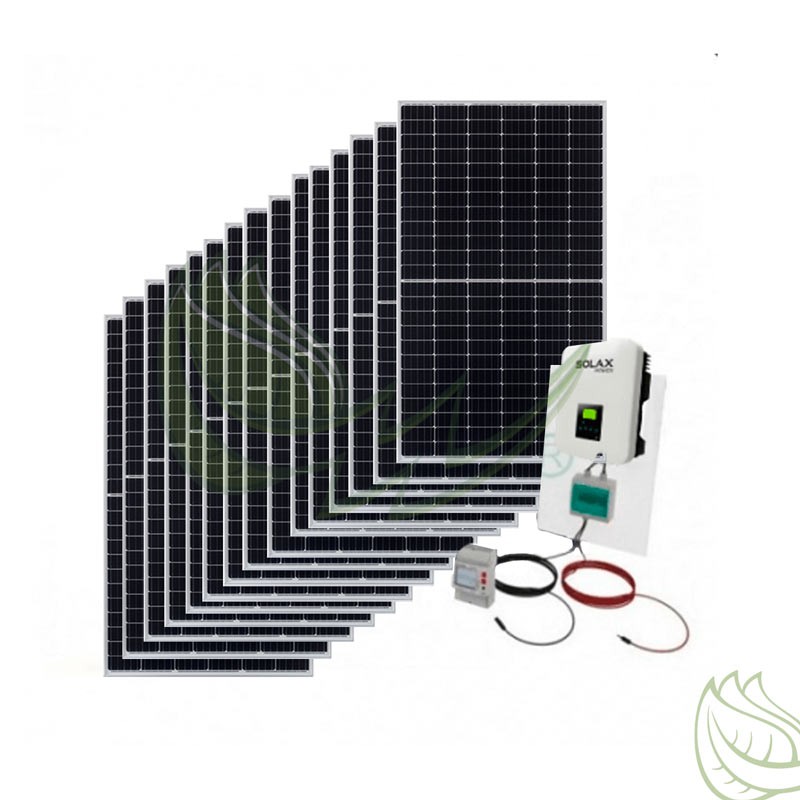 Kit solar 6825 Wp especialmente diseñado para autoconsumo fotovoltaico, totalmente preparado para verter tus excedentes a la red. Excelente para ahorrar en la factura de la luz y conseguir independencia de la compañía eléctrica. Incluye: 15 placas solares de 455 Wp (garantía de 10 años en materiales y 25 en la producción), inversor de red SOLAX X1-6.0 (garantía de 5 años con posibilidad de ampliación a 20) especialmente diseñado para autoconsumo fotovoltaico.