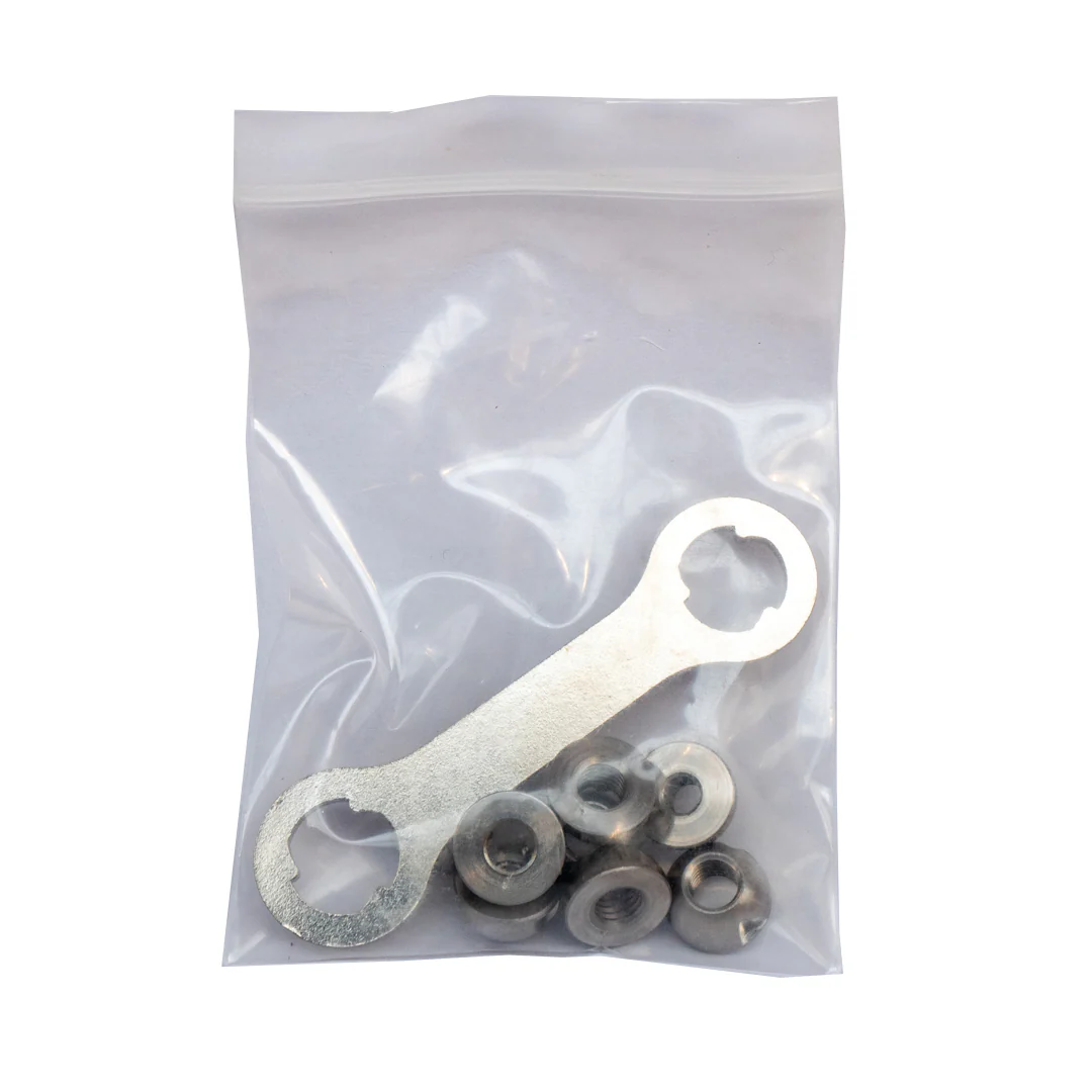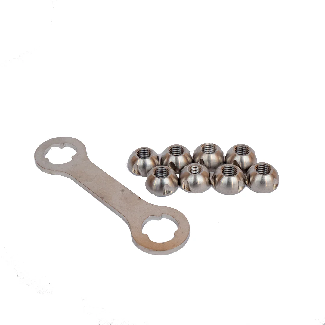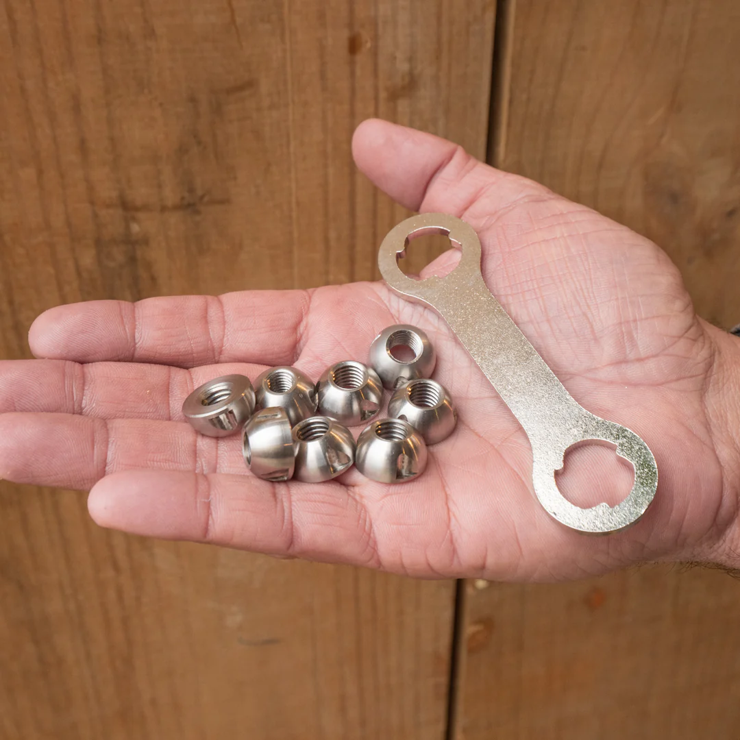 Set de 8 tuercas de seguridad con llave única para evitar robos.