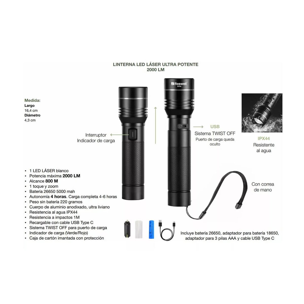 • Potencia máxima 2000 LM