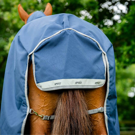 La manta Amigo Medium Exterior con cubre-cuello y un forro interior de 250 gramos. Para caballos que viven en el exterior o durante el día están en el exterior. Una manta muy versátil, impermeable y transpirable. El tejido exterior de poliéster es de 1200 Deniers (la resistencia del tejido).