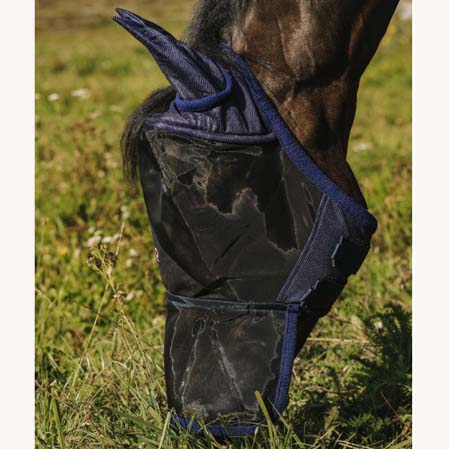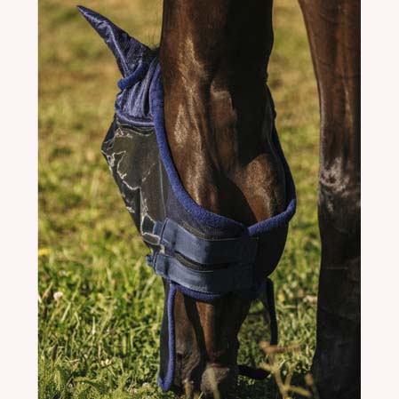 - La máscara protege el contorno de los ojos y el interior de las orejas de los caballos.