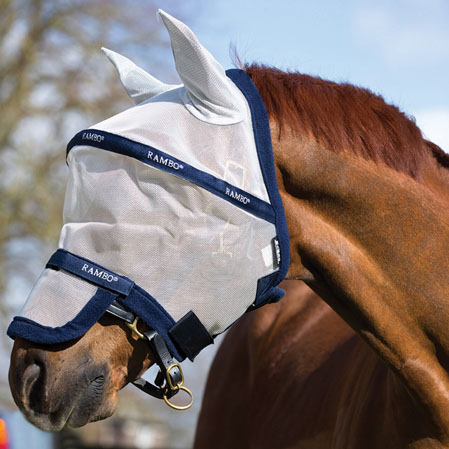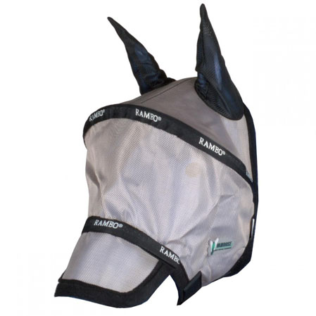 - Los bordes de la máscara Rambo Vamoose son de forro polar muy suave y cómodo para el caballo. El tratamiento de la máscara con permetrina impiden que los insectos entren por dentro de la máscara.
