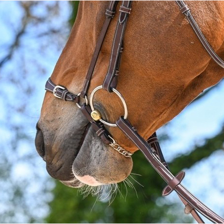 - Esta es una muserola con anillas laterales y con cadenilla en la parte posterior.