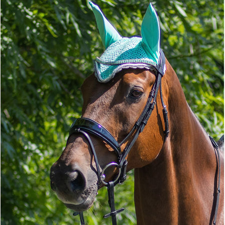 Con las orejeras se evita que los insectos entren dentro de las orejas de los caballos. De esta manera los caballos entrenan o pasean mucho mas tranquilos.