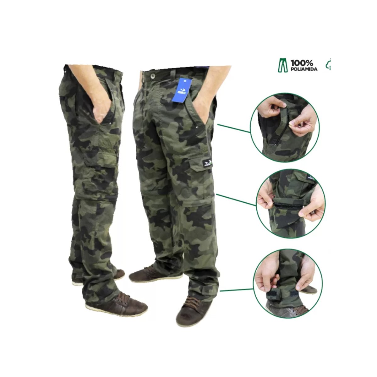 – Cremallera que transforma los pantalones en shorts