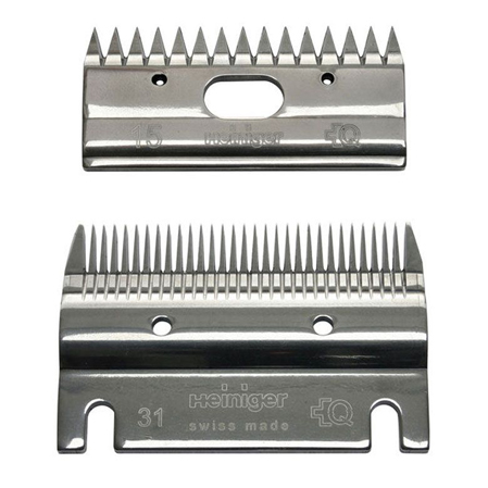 El juego peine cuchilla Heiniger 31 15 es una de las combinaciones mas estándar. El corte de pelo lo sitúa entre los 2 y 4 milímetros. Deja un corte limpio sobre el manto, es decir, un corte recto. Además el diseño de los dientes favorece un esquilado seguro para el caballo.