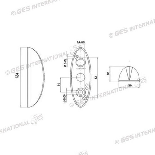 Dimensiones: 124 x 32 x 39 mm, distancia entre centros 83 mm