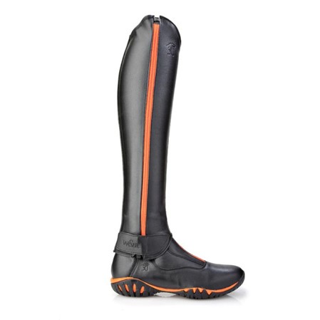 Las polainas montar a caballo Flexy de la firma italiana Sergio Grasso. Polainas fabricadas de piel Nappa elástica. Consiguen adaptarse a la pierna de cada jinete o amazona de manera ajustada con el cuero elástico. También llevan una correa que pasa por debajo de la suela de los botines para mantener el correcto ajuste.