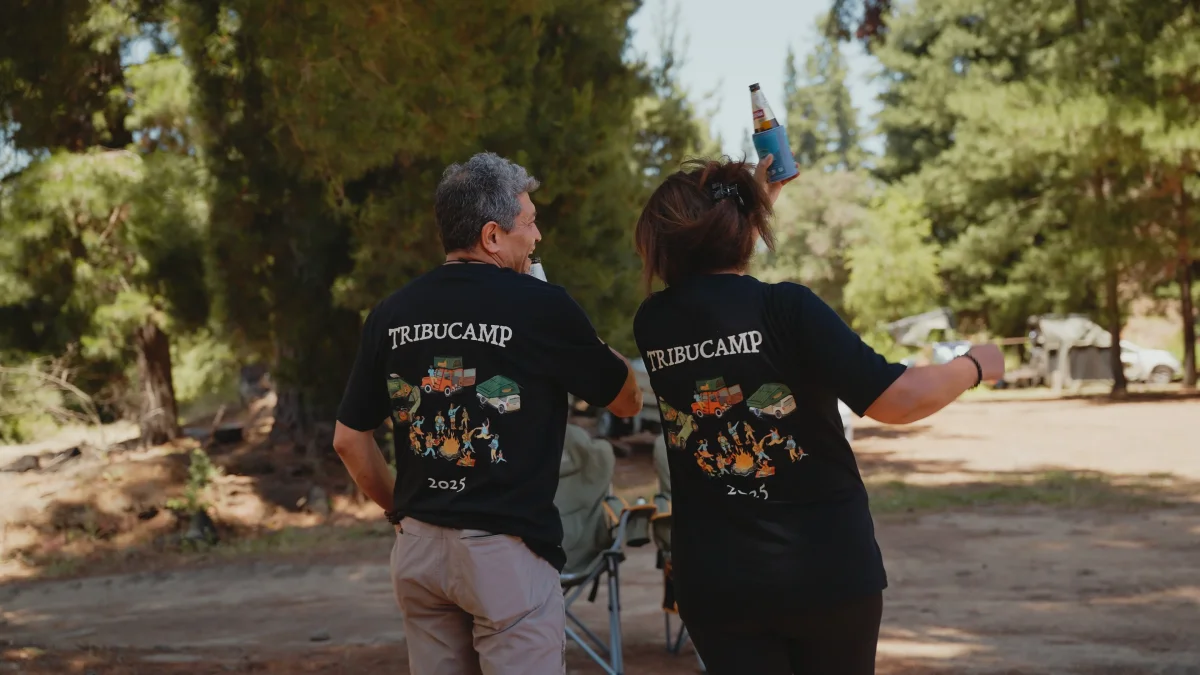 Polera Oficial del TRIBUCAMP 2025, primera edición de este evento Tribu que reúne a nuestra comunidad en torno a la naturaleza, el fuego y la amistad!