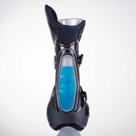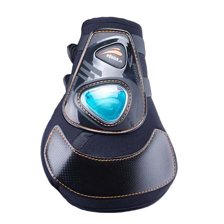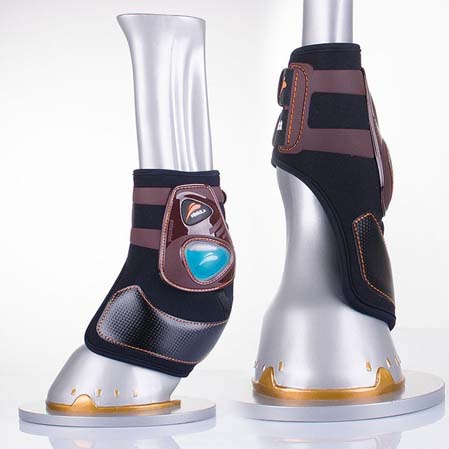 - La forma de los protectores es anatómica para ganar en confort para el caballo. Los delanteros envuelven el tendón para contribuir en su confort y sujeción.