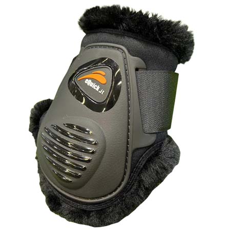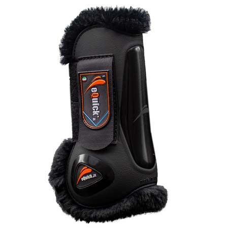 Los Protectores Equick Elight Panther para los caballos de salto. Los delanteros abiertos y los de menudillo traseros laterales. Además los protectores destacan por estar forrados con borreguito sintético por el interior. Las carcasas están reforzadas con TPU que es una goma endurecida. Esta asegurado el confort del caballo. Además están diseñados con una forma anatómica para un correcto ajuste a la extremidad del caballo.