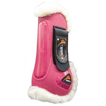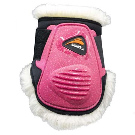 Los Protectores Equick Elight Unicorn en color rosa con efectos brillantes. Además el interior en contacto con el caballo es de borreguillo. Con ambas características conseguimos unos protectores con un look muy potente y muy cómodos para el caballo.